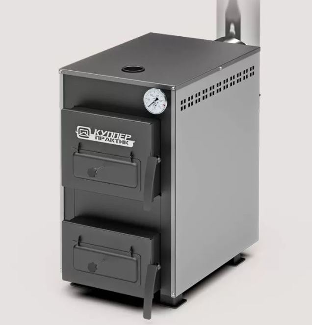 Бюджетная модель «Куппер ПРАКТИК» при весьма небольших габаритах обладает мощностью, вполне достаточной для отопления помещений площадью 200 м2