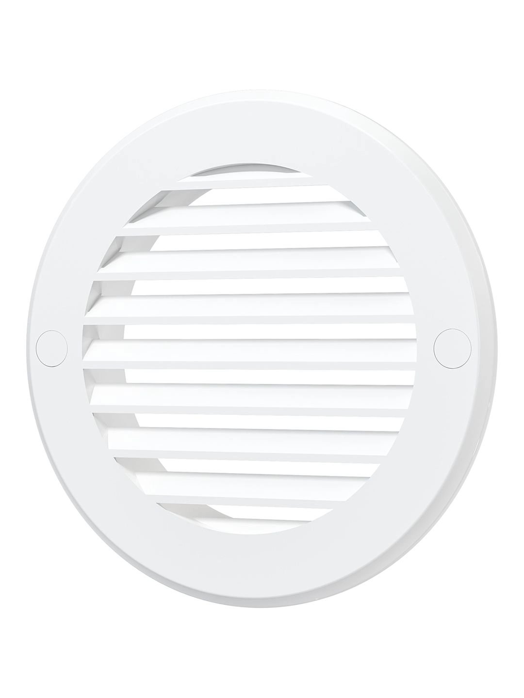 Решетка РК оснащена наклонными жалюзи, скрывающими от глаз вентиляционную шахту. Монтируется с круглыми пластиковыми воздуховодами ВП, соединяется при помощи фланца. В комплекте есть заглушки для монтажных отверстий.