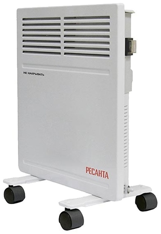 Конвектор данной модели комплектуется монолитным Х-образным нагревательным элементом. Для удобства эксплуатации предусмотрены разные температурные режимы. Высокоточный термостат поддерживает заданную температуру в помещении. Устанавливаться электроконвектор РЕСАНТА ОК-1000 может на стену или пол. Для простого перемещения он комплектуется колесиками. Имеет небольшой вес и компактные размеры. Работает бесшумно, может использоваться в дневное и ночное время. К преимуществам модели стоит отнести и высокую пожарную безопасность, прибор имеет встроенную термозащиту. Так как электрообогреватель данного типа имеет уровень защиты IP24, его можно устанавливать даже в помещении с повышенной влажностью.