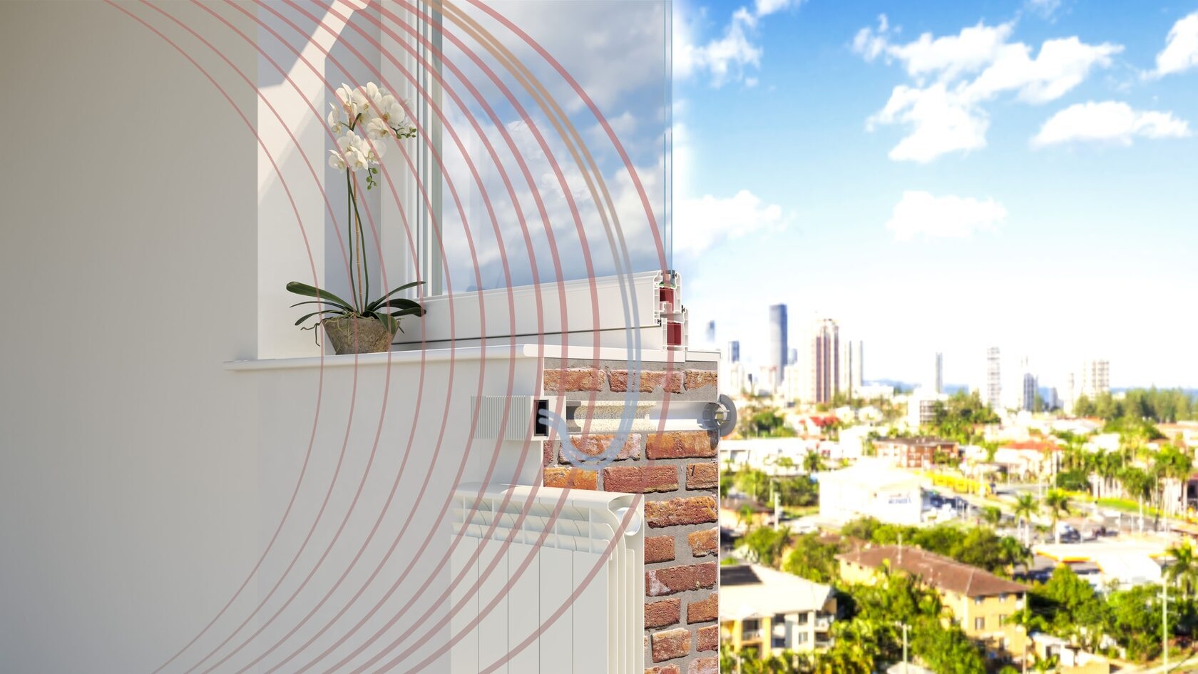Приточный клапан Norvind classic устанавливается над радиатором отопления с направлением движения воздуха вдоль радиатора: уличный воздух будет нагреваться от батареи.
