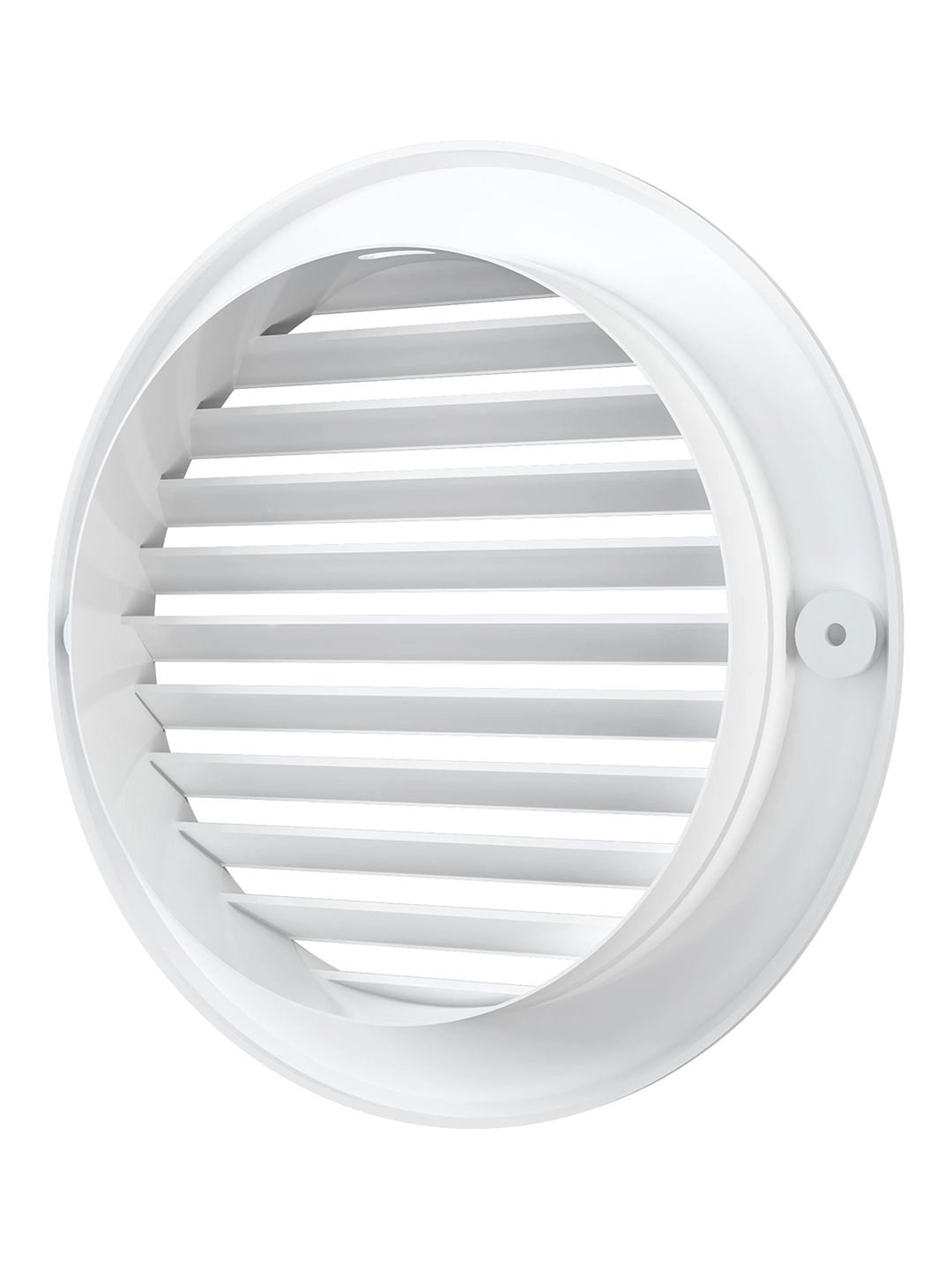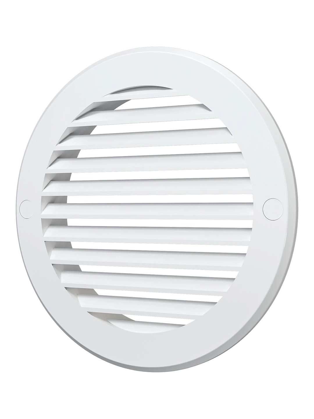 Решетка РК оснащена наклонными жалюзи, скрывающими от глаз вентиляционную шахту. Монтируется с круглыми пластиковыми воздуховодами ВП, соединяется при помощи фланца. В комплекте есть заглушки для монтажных отверстий.