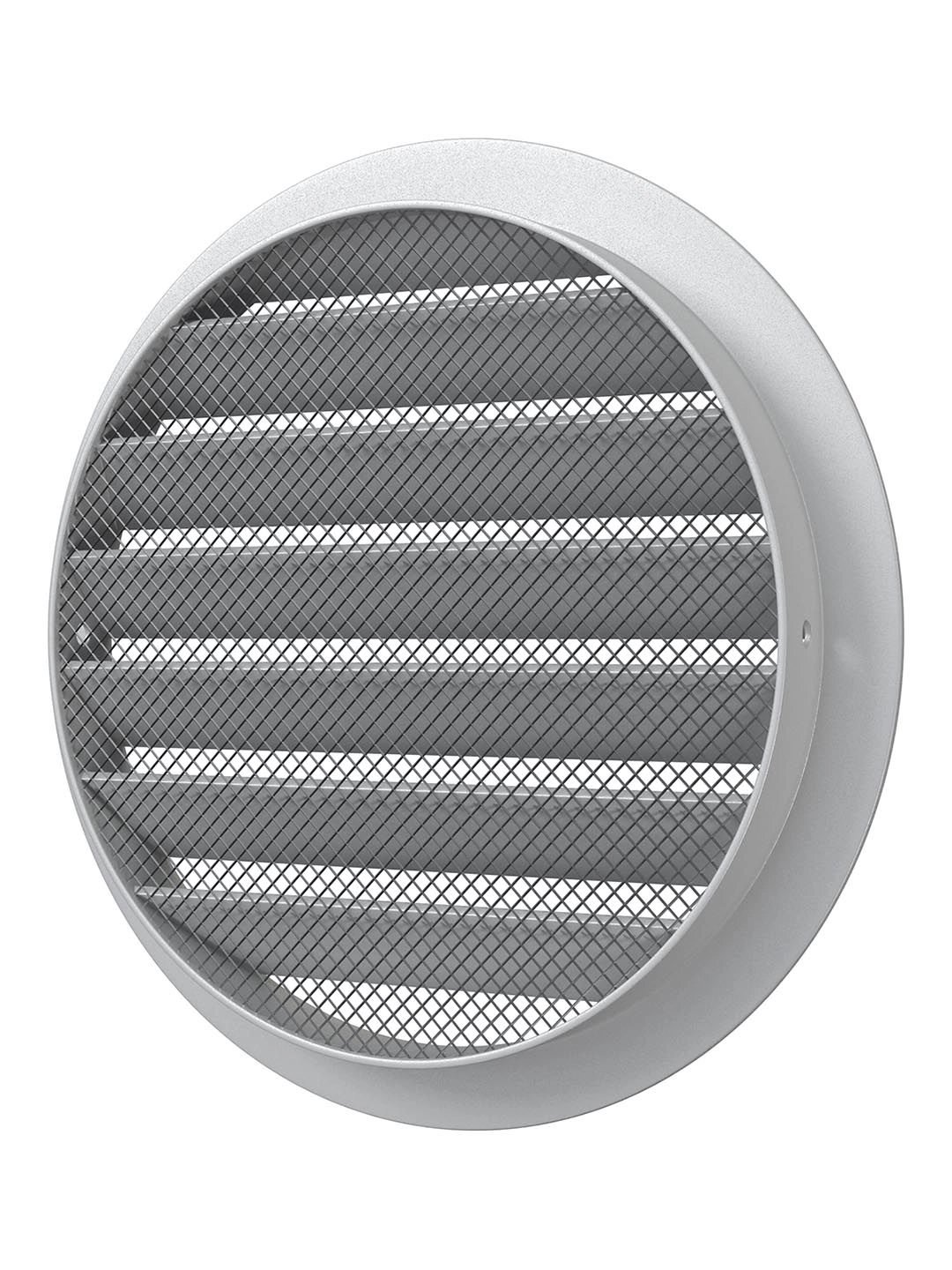 Наружная приточно-вытяжная решетка РКМ монтируется на внешних стенах. Имеет наклонные жалюзи, скрывающие от глаз вентиляционный канал. Решетка изготовлена из алюминиевого сплава, антимоскитная сетка — из нержавеющей стали. Соединяется с воздуховодами через круглый фланец.