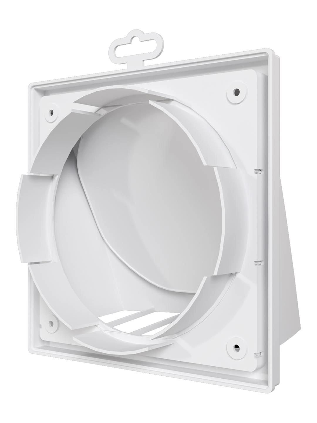 1515К10ФВ, Выход стенной вытяжной с обратным клапаном 150х150 с фланцем D100, ASA, бел