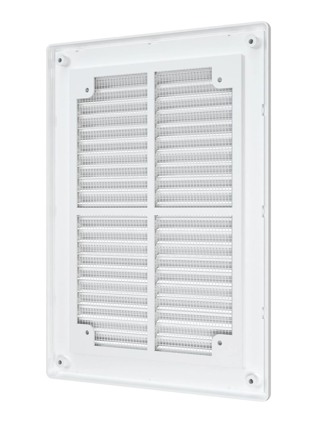 Вентиляционная решетка Р состоит из двух частей: рамки и решетки с жалюзи. Решетка не крепится непосредственно к стене или к потолку, а вставляется в рамку, которая монтируется на поверхности. Это позволяет легко снимать изделие для обслуживания: необходимо достать решетку из рамки, а затем также легко вернуть на место. Решетка оснащена наклонными жалюзи, которые помогают скрыть вентиляционный выход, а также антимоскитной сеткой для защиты от насекомых. Решетки Р представлены также в коричневом, бежевом и черных цветах.