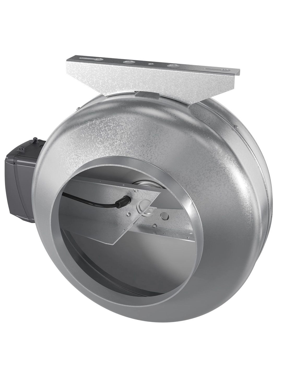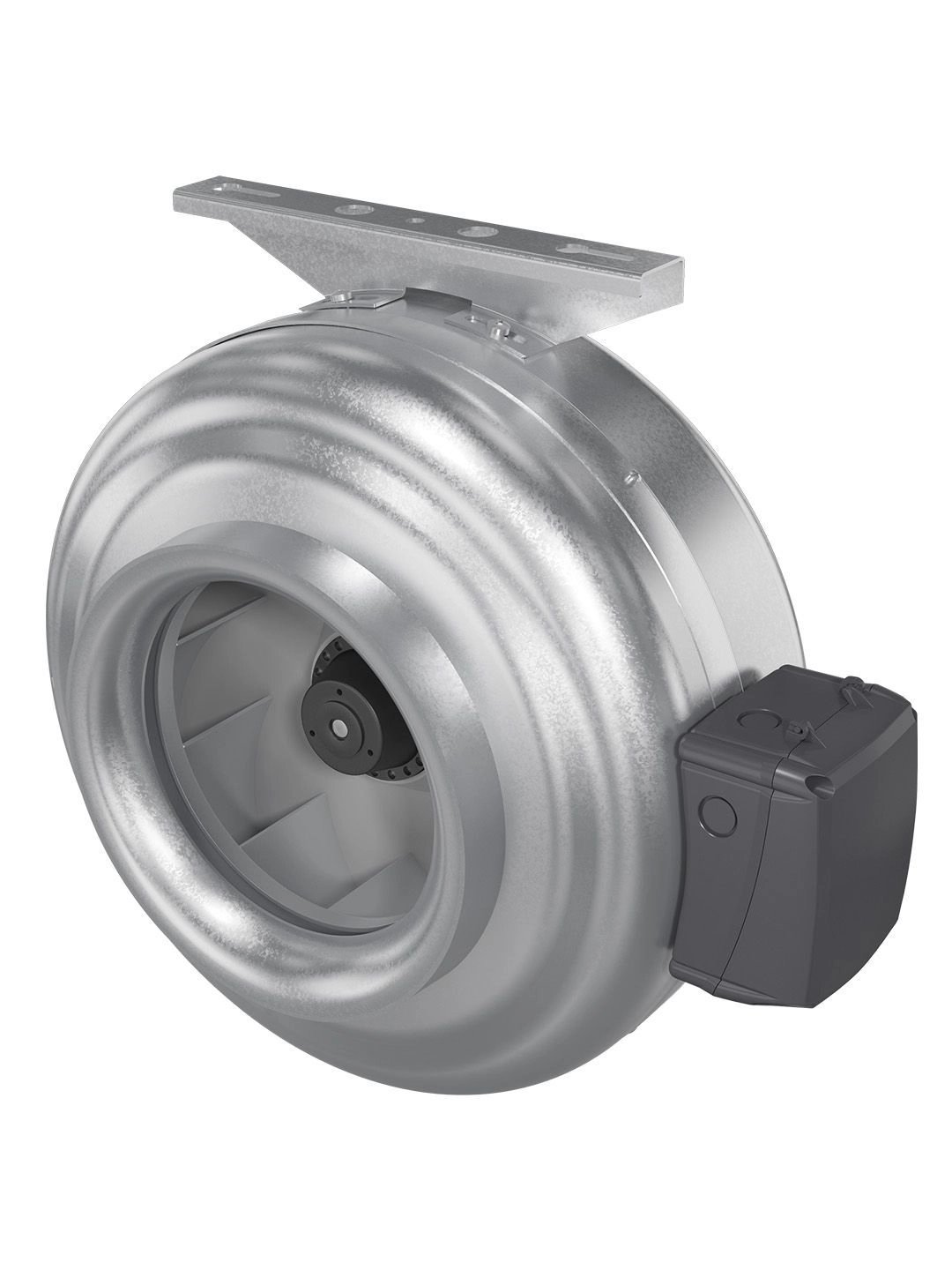 Коммерческий канальный центробежный вентилятор, выполненный в корпусе из оцинкованной стали. Предназначен для установки в любой точке приточно-вытяжной вентиляционной системы и под любым углом. В вентилятор устанавливается однофазный двигатель на шарикоподшипниках с внешним ротором, который оснащен рабочим колесом с загнутыми назад стальными лопатками. Мотор имеет тепловую защиту с автоматическим перезапуском. Подключение осуществляется в герметичной клеммной коробке с откидной крышкой. Степень защиты оболочки электрооборудования от проникновения твердых частиц и воды – IPX4, двигателя – IP44. В коробку с вентилятором вкладывается кронштейн для монтажа к поверхности и два винта для крепления кронштейна к корпусу.