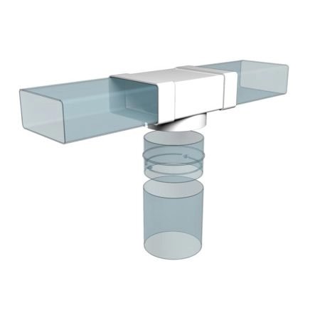 ТФП соединители плоских каналов с выходом на фланец. Соединитель плоских воздуховодов с выходом на фланцевые воздухораспределители. Для соединения двух плоских воздуховодов и устройства с фланцем – анемостата, диффузора, решетки или вентилятора. Монтаж с круглым воздуховодом возможен через соединитель СКП.