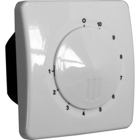 Регуляторы скорости применяются в системах вентиляции для управления скоростью вращения электродвигателей вентиляторов. Скорость регулируется на лицевой части устройства с помощью ручки управления, также она отвечает за включение/выключение. Минимальная скорость вращения задается переменным резистором. С помощью регулятора скорости можно также управлять несколькими вентиляторами. Однако для этого существует одно условие: общий потребляемый ток не должен превышать предельно допустимую величину тока регулятора. Регулятор монтируется на поверхность стены (модель РС-Н) или в стандартные электромонтажные круглые коробки (модель РС-В). Оснащены фильтром высокочастотных помех и плавким предохранителем на 2,5 А (запасной предохранитель входит в комплект). Регуляторы скорости помогают сэкономить электроэнергию, снизить шум от работающего вентилятора, установив его на малые обороты при отсутствии необходимости работы на максимальной скорости, что позволяет продлить срок эксплуатации оборудования в несколько раз.