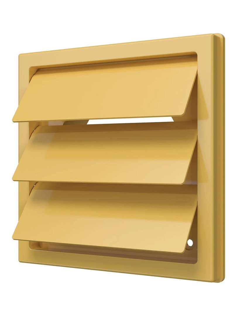 • 1515К10Ф беж, Решетка приточно-вытяжная с гравитационными жалюзи150х150 с фланцем D100, ASA, беж