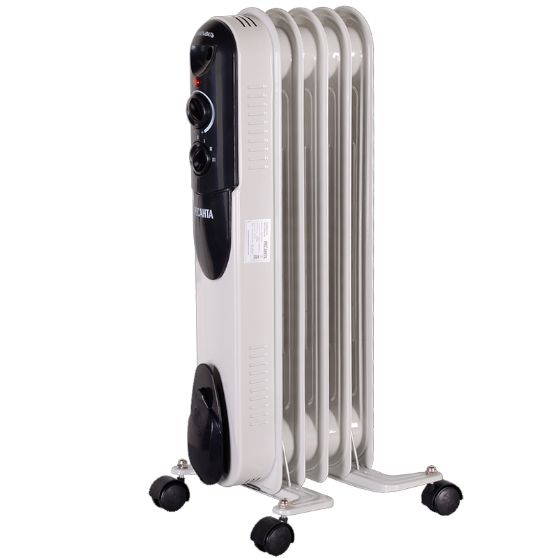 Масляный радиатор РЕСАНТА ОМПТ-5Н предназначен для обогрева воздуха и создания комфортной атмосферы в холодное время года. В металлическом корпусе находится масло, нагреваемое до высокой температуры при помощи нагревательного элемента. Далее радиатор отдает тепло помещению. Масляный радиатор оснащен термостатом, что позволяет ему автоматически поддерживать в помещении заданную пользователем температуру. Существенным плюсом является и то, что он обладает низкой температурой корпуса, благодаря чему практически не выжигает кислород в помещении.