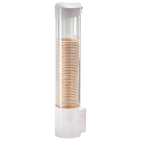 Держатель стаканов для кулера на магните белый - контейнер, диаметром 85 мм, присоединяемый к кулерам для воды и предназначенный для хранения и автоматической подачи пластиковых стаканов. Корпус выполнен из высококачественного поликарбоната, благодаря чему достигается высокая степень прозрачности. Снабжен крышкой и крепится к поверхности при помощи магнита. Загрузка осуществляется сверху. В комплекте идет стаканодержатель и магнит