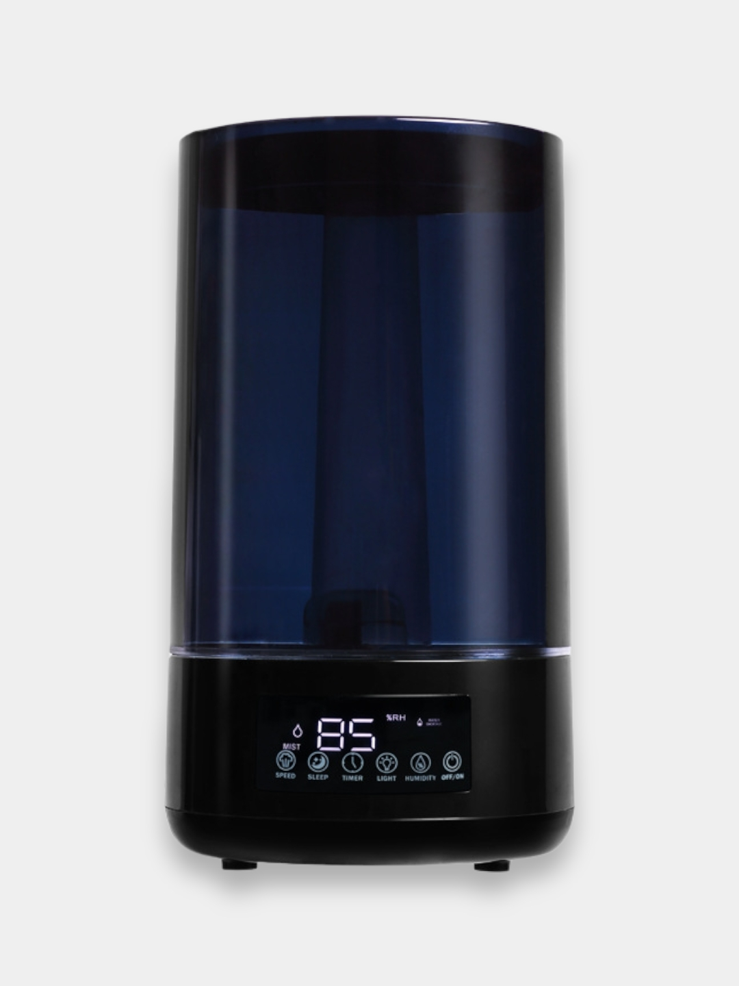 Представленная модель оснащена функцией поддержания влажности в помещении от 40 до 70 процентов, а также таймером до 12 часов. Также стоит отметить возможность ароматизации испаряемого тумана. Резервуар для воды вмещает до 4.5 литров, что обеспечивает до 14 часов непрерывной работы. Резервуар для воды выполнен в прозрачном дизайне, благодаря чему Вы можете контролировать уровень воды в устройстве. Прибор оснащен кармическим фильтром, который очищает и смягчает воду.